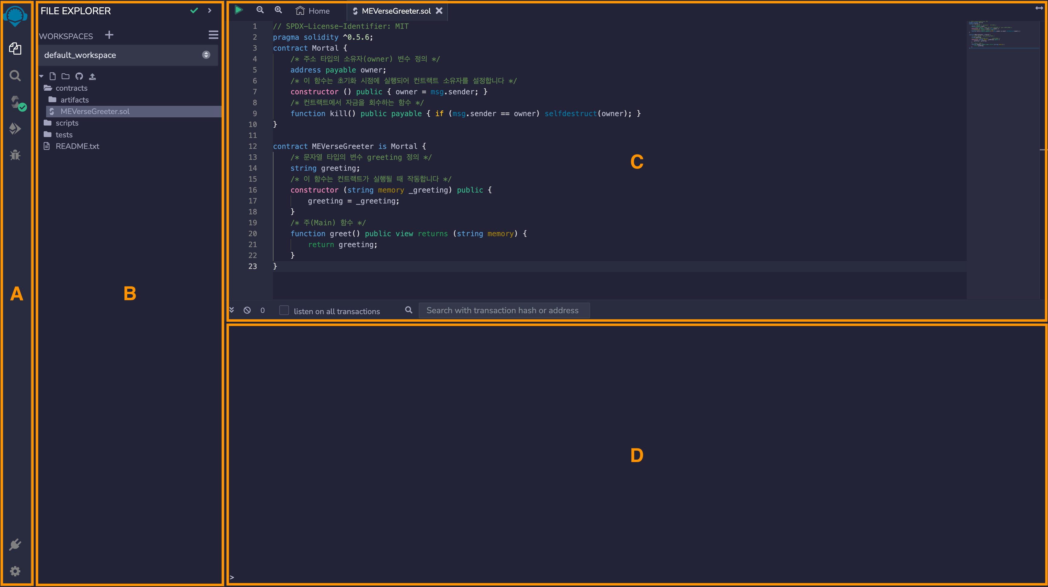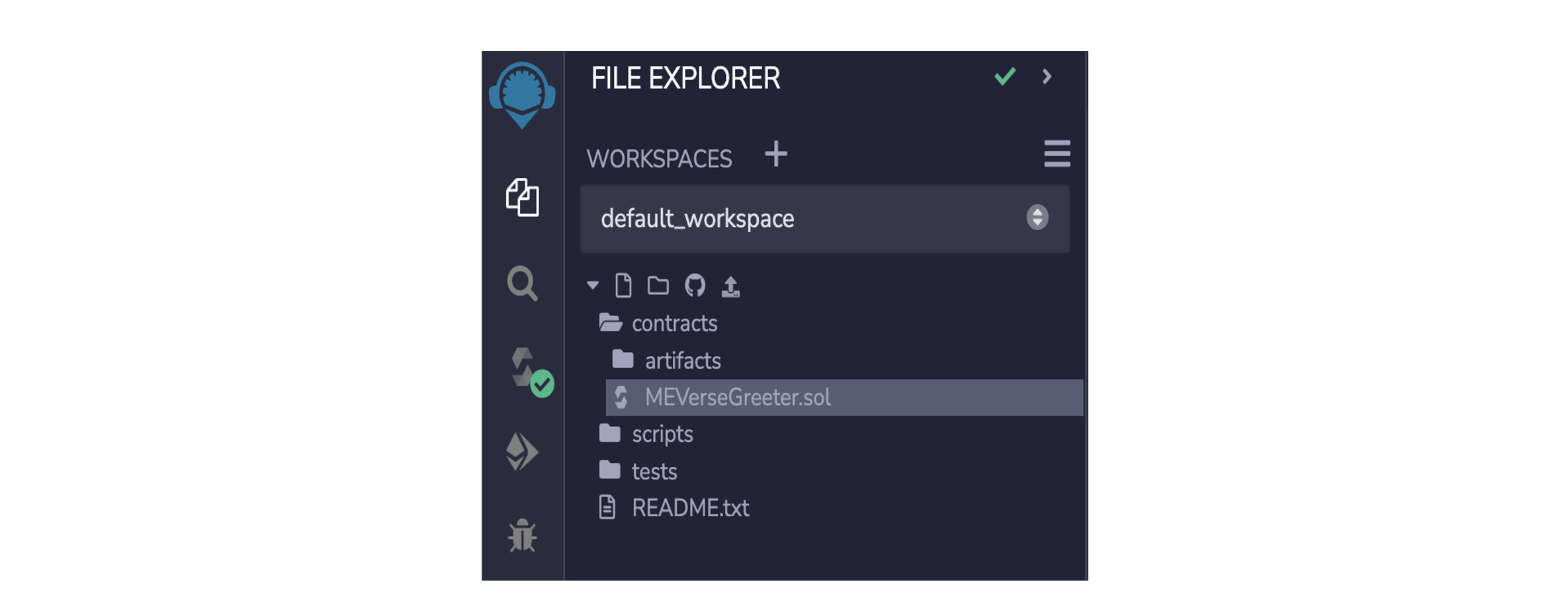 contracts 디렉토리에 Code Editor로 MEVerseGreeter.sol을 생성합니다.